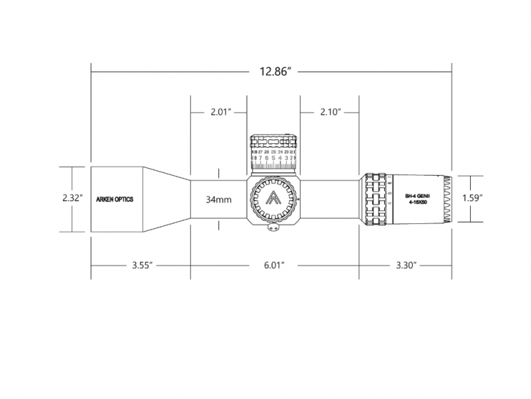The Arken Optics SH4 4-16X50 GEN2 FFP VPR Illuminated Rifle Scope is a FFP (First Focal Plane) optic that features a simple but rugged zero stop mechanism. The Arken SH4 incorporates adjustable elevation and windage turrets with tactile and audible clicks. These turrets offer 8 mils/20 moa per revolution.